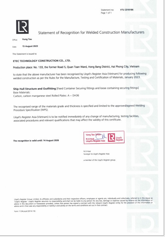 Kiểm soát chất lượng sản phẩm theo quy trình được giá bởi tổ chức Lloyd.